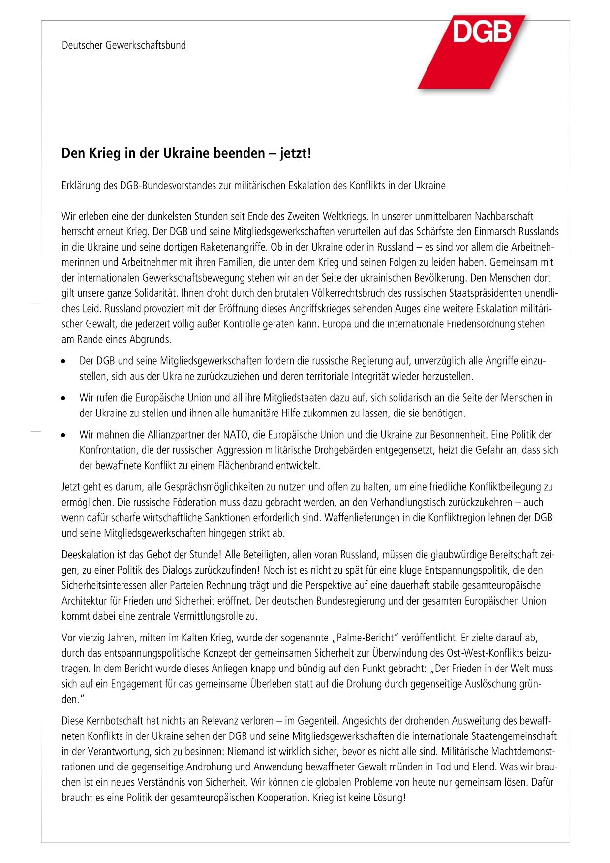 Russland bricht unverhohlen mit Grundsätzen der UN-Charta und entfacht einen Krieg auf europäischem Boden. Wir sind in Gedanken bei den Opfern und Betroffenen. Wir fordern die russische Regierung auf, alle Angriffe einzustellen und ihre Truppen zurückzuziehen!